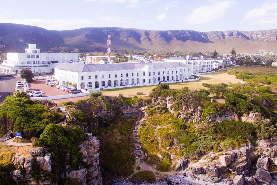 Cet élégant hôtel est spectaculaire, perché directement sur les falaises de la ville côtière d'Hermanus. Il surplombe la célèbre Walker Bay d'Afrique du Sud, qui accueille chaque année de nombreuses baleines entre juillet et novembre.