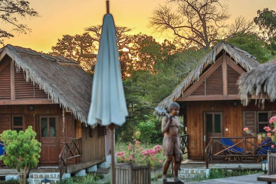 Disposés en arc de cercle sur un vaste terrain, les bungalows sur pilotis mélangent la briques et le bois, avec un toit de chaume. Ils sont spacieux et possèdent un ventilateur et une terrasse meublée avec vue.