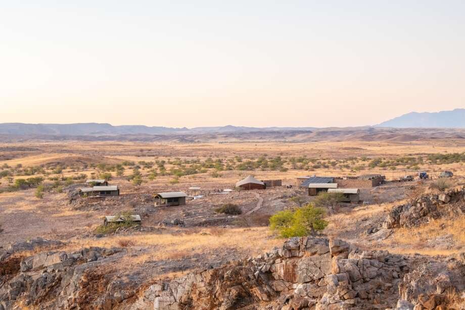 Ce petit camp intime fonctionne à l'énergie solaire et offre une expérience proche de la nature. Il est situé de manière pittoresque sur une petite colline avec vue sur le lit d'une rivière généralement à sec. L'espace principal, ouvert vers l'avant, abrite la salle à manger, le bar et un salon confortable avec une cheminée. Par beau temps, les repas sont servis sous un ciel étoilé unique. Il y a également un foyer entouré de sièges confortables, ainsi qu’une terrasse ensoleillée avec une petite piscine. De presque tous les côtés, on jouit d’une vue à couper le souffle sur les vastes environs. Le camp s'engage avec le « Save the Rhino Trust » pour la protection et la conservation des rares rhinocéros noirs, à la recherche desquels vous partirez dans le cadre des activités. Enfants à partir de 6 ans. WiFi.