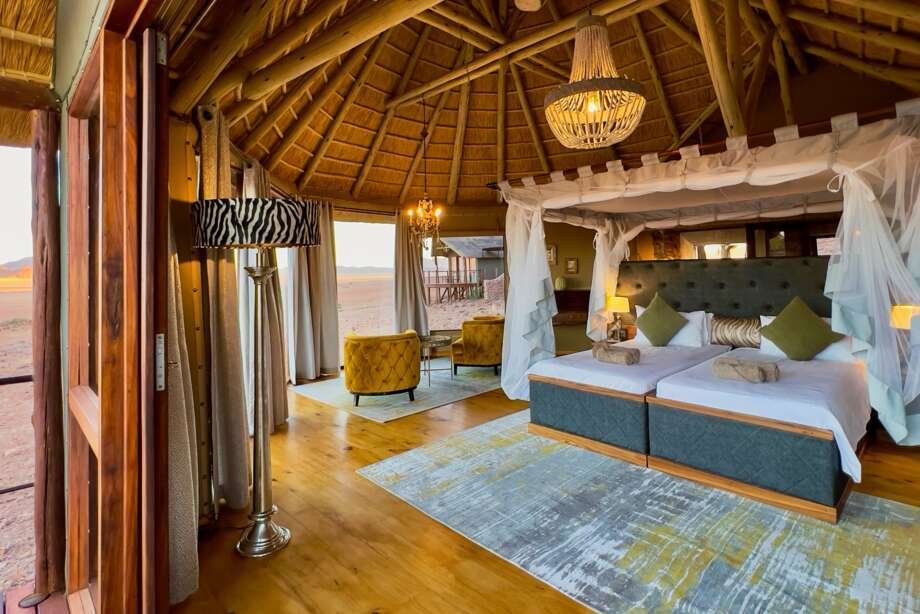 Contre paiement: excursions à Sossusvlei, tours dans la nature, randonnées guidées, équitation et vol en montgolfière.