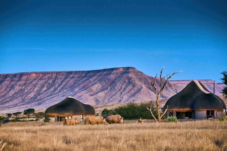 Réjouissez-vous d'un lieu de calme et d'isolement avec des vues époustouflantes sur le paysage désertique qui semble infini. Le vaste bâtiment principal abrite une salle à manger, une salle de séjour confortable avec un bar et une cheminée. Une piscine rafraîchissante et une terrasse invitent à se rafraîchir les jours de grande chaleur. Dans le boma, des soirées barbecue africaines sont organisées sous le ciel étoilé unique de la Namibie. Avec un peu de chance, vous pourrez observer des rhinocéros et d'autres animaux en train de s'abreuver au point d'eau devant le lodge. WiFi.