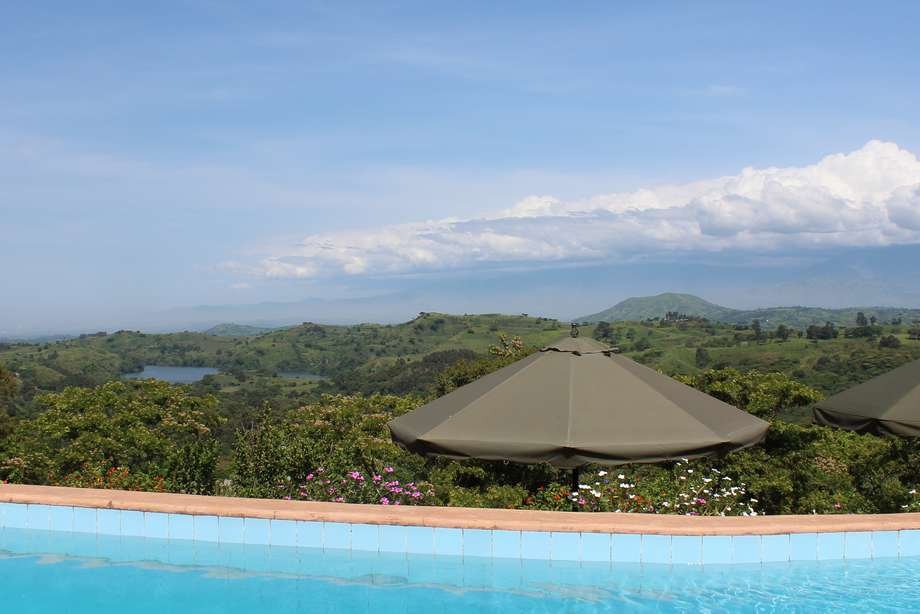 Sur une colline dans un paysage idyllique avec de nombreux lacs de cratère. A env. 45 minutes de la forêt de Kibale.