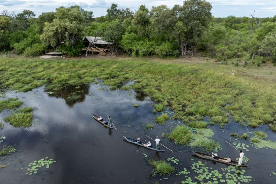Wasser-/Land-Camp. Das intime Zelt-Camp liegt abgeschieden und inmitten eines uralten Flusswaldes entlang des Mbudi River in der Khwai Konzession, die für ganzjährig hervorragende Tierbeobachtungen bekannt ist.