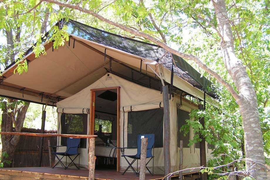 Die Zelte sind so gestaltet, dass sie sich harmonisch in die natürliche Umgebung einfügen. Rustikale Zelte mit Dusche, Safe und kleiner Terrasse.